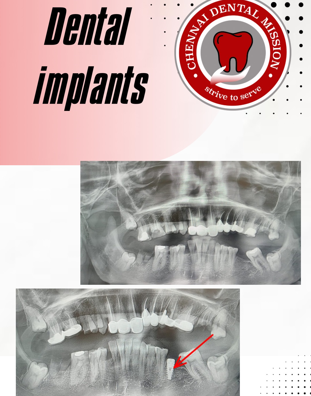 At Chennai Dental Mission, we provide advanced dental implant treatments in Anna Nagar, Chennai, using world-class implant systems and digital technology. Our goal is to help you replace missing teeth permanently and restore your natural smile with strong, long-lasting, and aesthetic dental implants. Why Choose Dental Implants? Dental implants are the most modern and permanent solution for missing teeth. Unlike bridges or removable dentures, implants replace both the tooth root and crown, giving you the comfort and function of natural teeth. Long-lasting and durable Look and feel like natural teeth Prevent bone loss and facial sagging Improve chewing, speech, and confidence No damage to nearby teeth Advanced Implant Technology at Chennai Dental Mission We use 3D CBCT-guided implant planning, digital scans, and high-precision implant systems such as Nobel Biocare, Straumann, and Osstem to ensure accurate, safe, and comfortable results. Our in-house OPG and digital X-rays help us plan implant positions perfectly minimizing pain, maximizing success. Expert Implant Dentists in Chennai At Chennai Dental Mission, our implant specialists in Anna Nagar have years of experience performing: • Single-tooth implants • Multiple teeth replacement • Full-mouth dental implants • Immediate loading implants • Sinus lift and bone grafting We focus on painless, predictable, and aesthetic implant dentistry, ensuring every patient regains full confidence to smile and eat comfortably. Dental Implant Cost in Chennai The cost of dental implants in Chennai depends on the type of implant, brand, and supporting procedures. At Chennai Dental Mission, we provide affordable and transparent pricing for every implant treatment with flexible payment options. We also offer a free implant consultation to discuss your needs and customize your treatment plan. Visit the Best Dental Implant Clinic in Anna Nagar, Chennai If you’re searching for: • Best dental implant clinic in Chennai • Dental implant specialist Anna Nagar • Affordable implant dentist near me • Full mouth dental implants Chennai • Permanent tooth replacement in Chennai Then Chennai Dental Mission is the right place for you. Book Your Appointment Today Bring back your confident smile with safe, modern, and long-lasting dental implants. Location: Chennai Dental Mission, Anna Nagar, Chennai Call or WhatsApp: 73587 33008 Website: www.chennaidentalmission.com