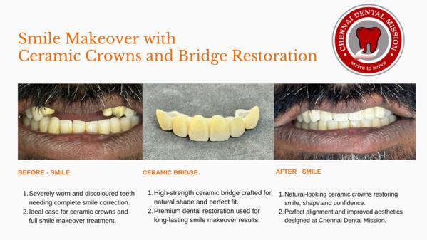 Smile Makeover with Ceramic Crowns and Bridge Restoration at Chennai Dental Mission Anna Nagar